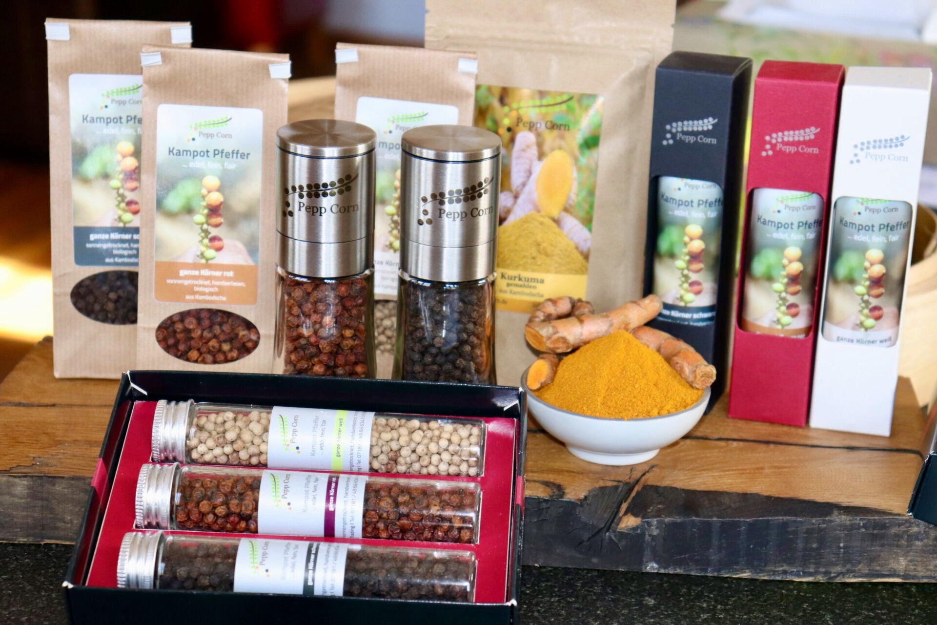 PeppCorn steht für echten Geschmack mit gutem Gefühl. Unser Kampot Pfeffer ist das Herzstück – handgepflückt, nachhaltig und unvergleichlich im Aroma. Dazu bringen wir mit feinen Gewürzen und Mischungen noch mehr Vielfalt in Ihre Küche.